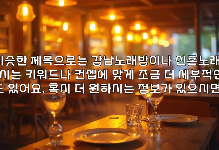 강남 최고의 가라오케, 친구와 함께 즐기는 노래방!강남은 서울의 핫플레이스 중 하나로, 다양한 문화와 오락이 공존하는 지역입니다. 특히, 친구들과 즐길 수 있는 가라오케는 강남의 나이트 라이프에서 빠질 수 없는